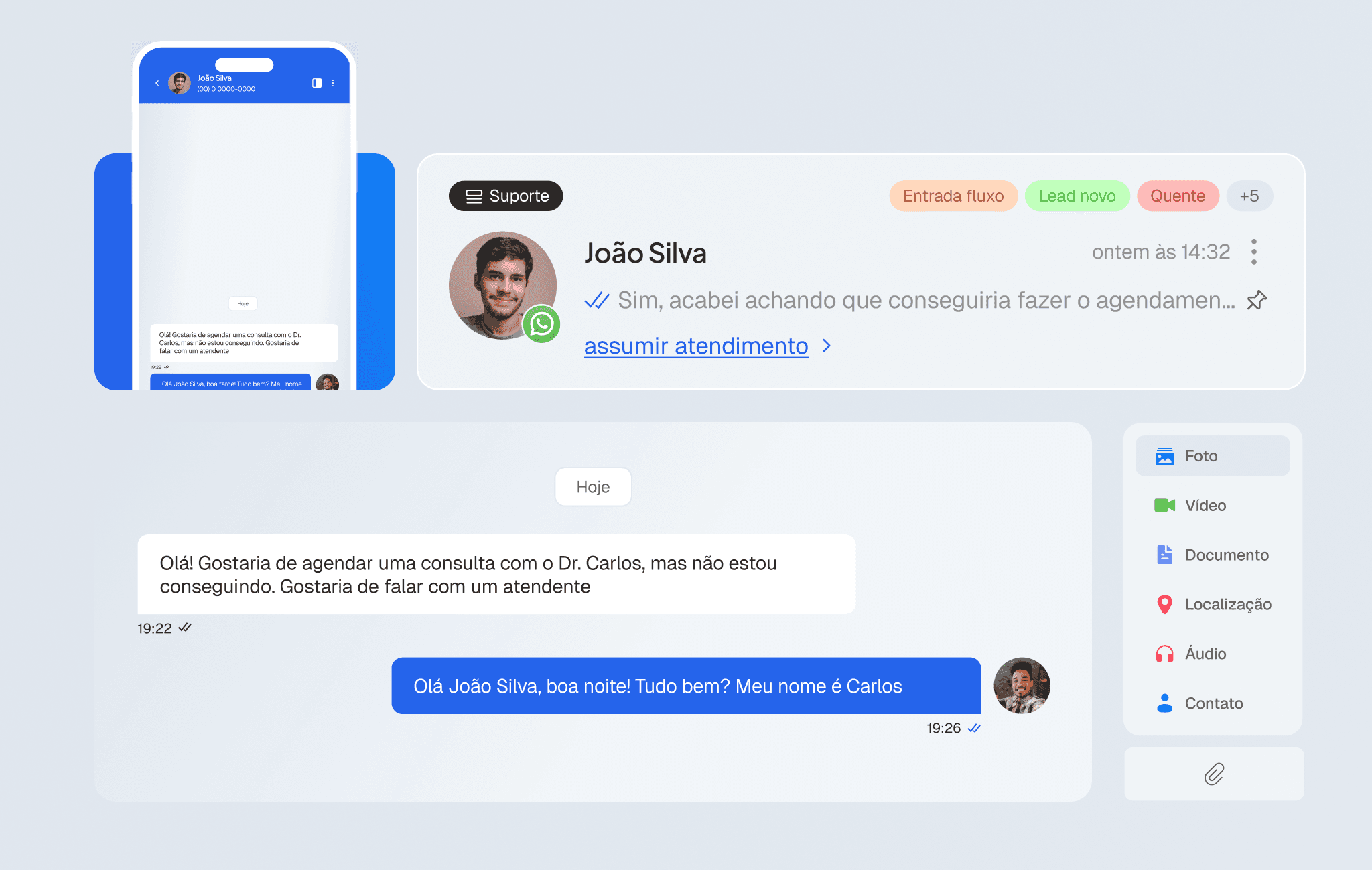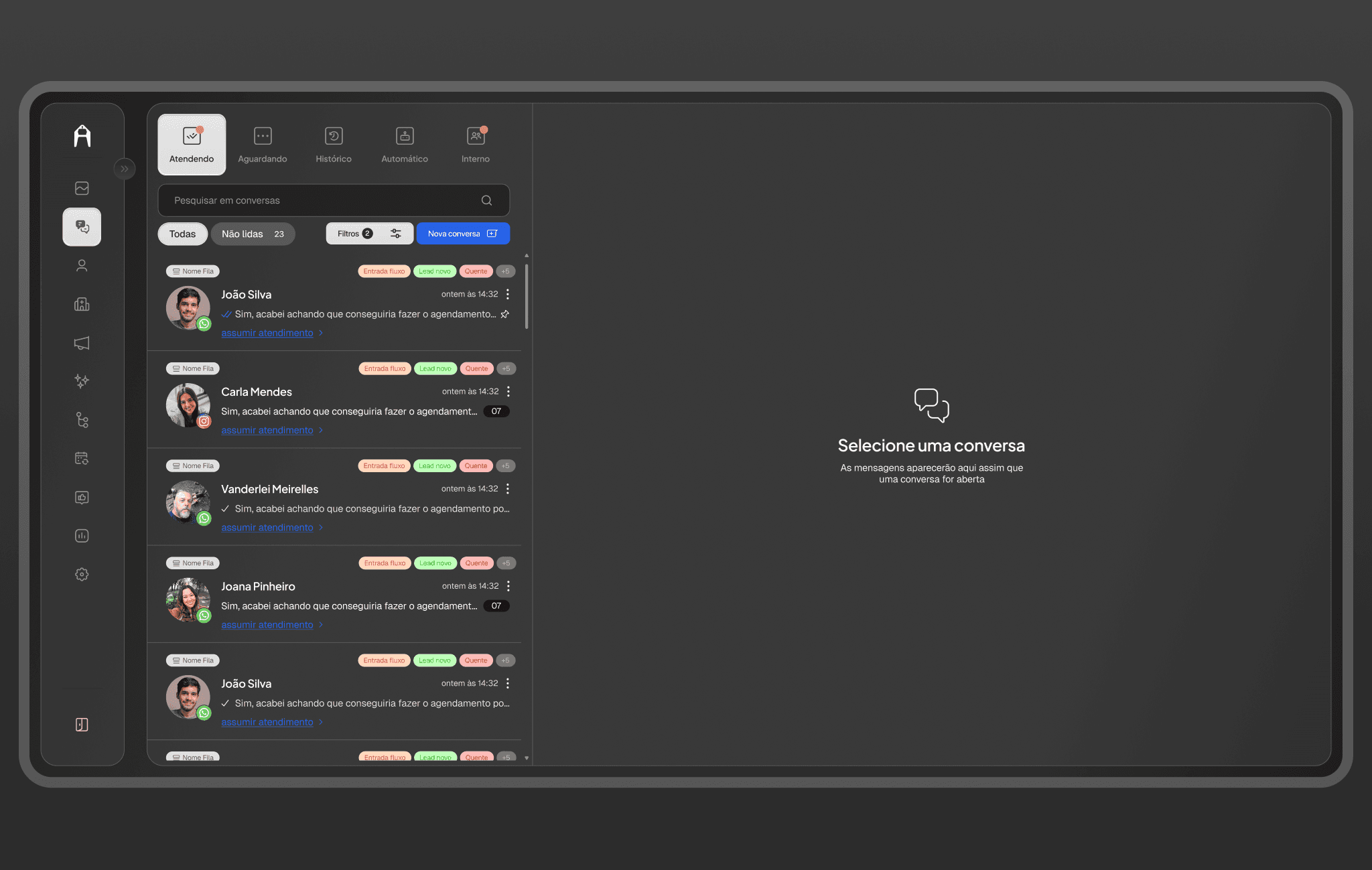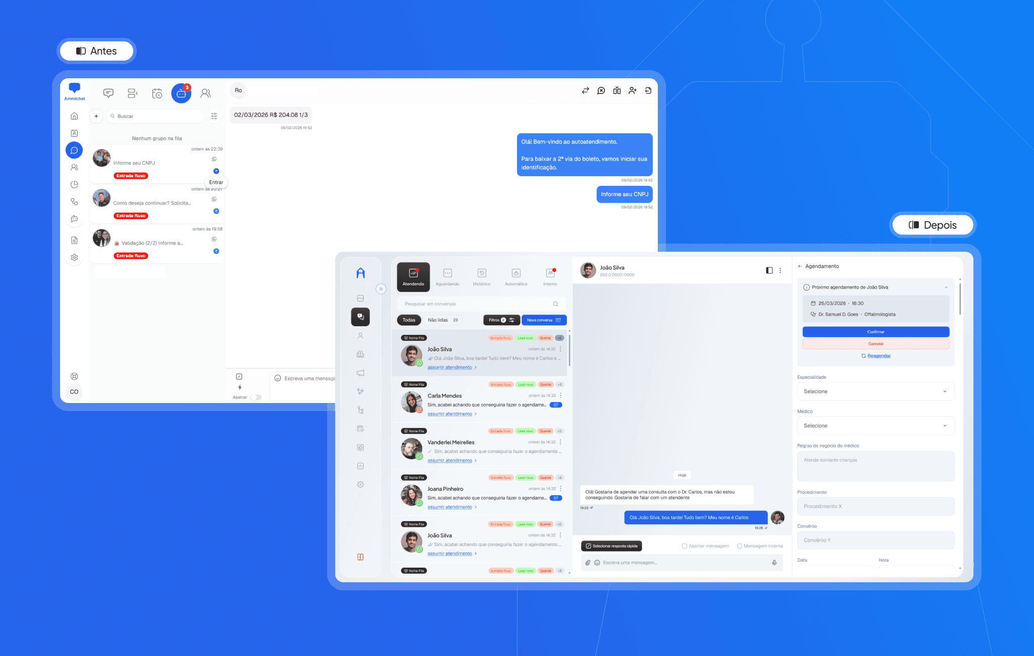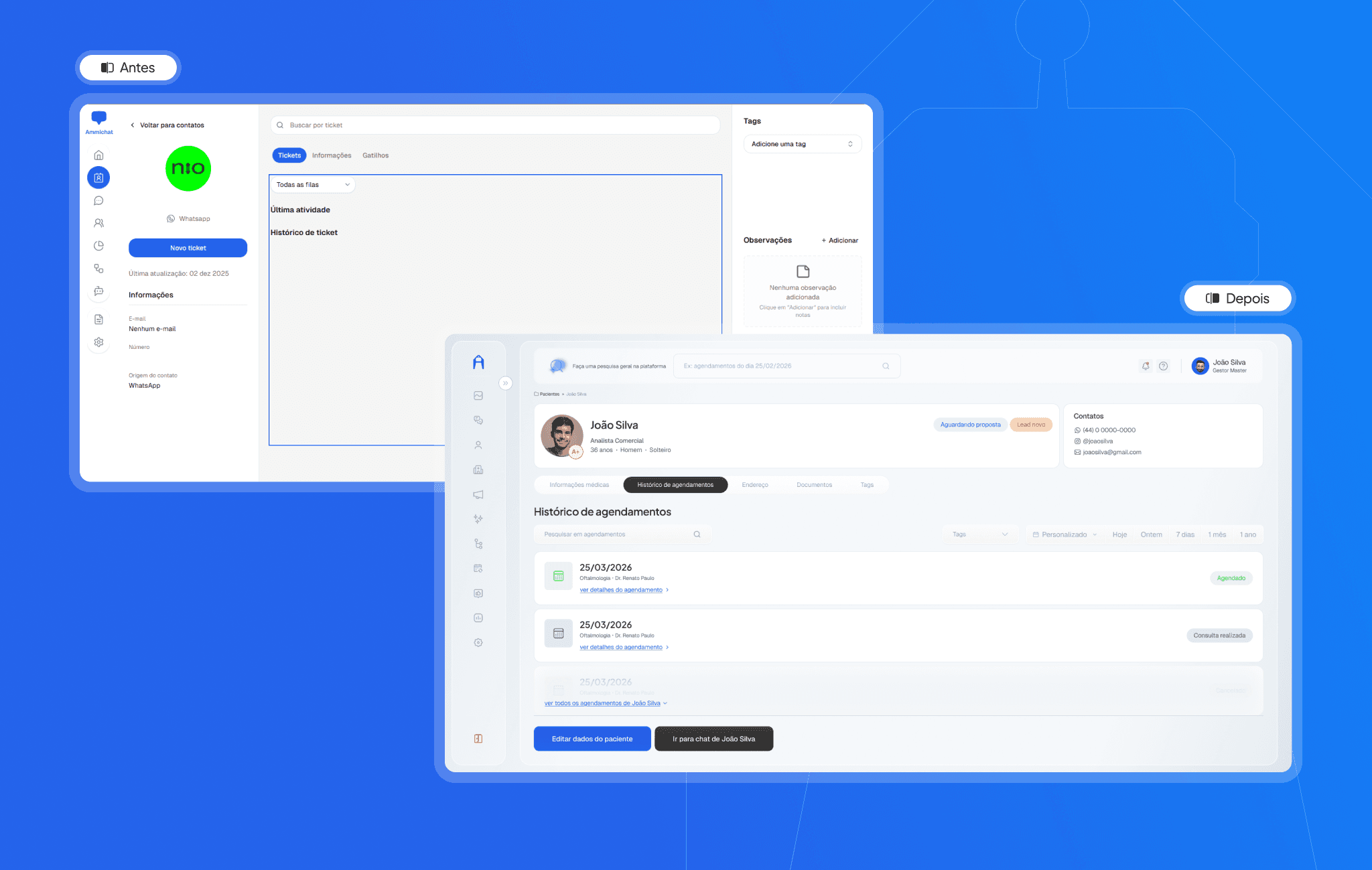 A plataforma nasceu com um propósito claro: centralizar o atendimento de clínicas e hospitais em um único canal. E ela fazia isso bem…enquanto o problema era só o chat.