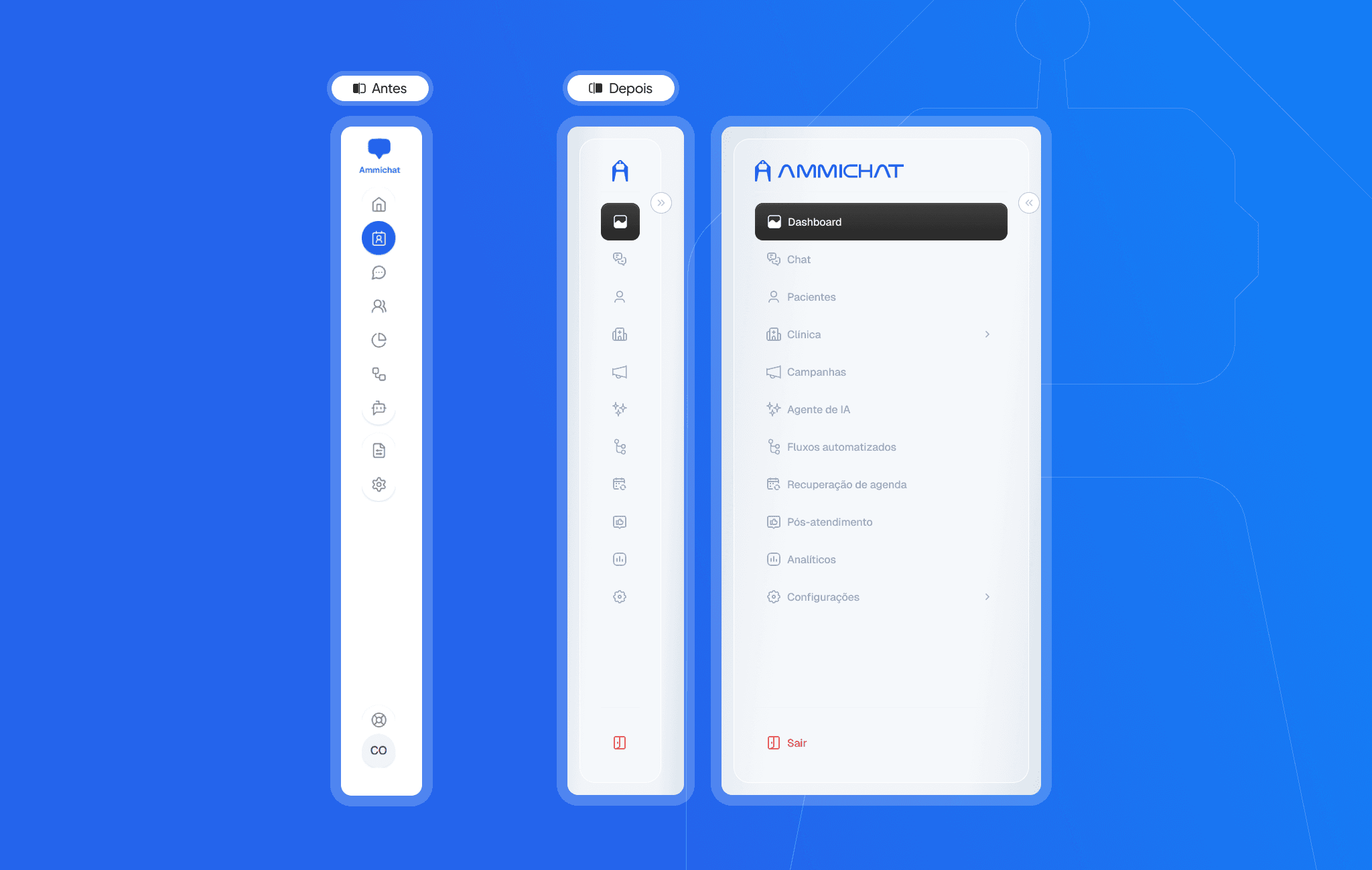 O redesign transformou o Ammichat de um chat com integrações em uma central de atendimento construída em torno do fluxo real de uma clínica e do que as atendentes disseram durante a pesquisa. Cada decisão teve uma razão operacional por trás.